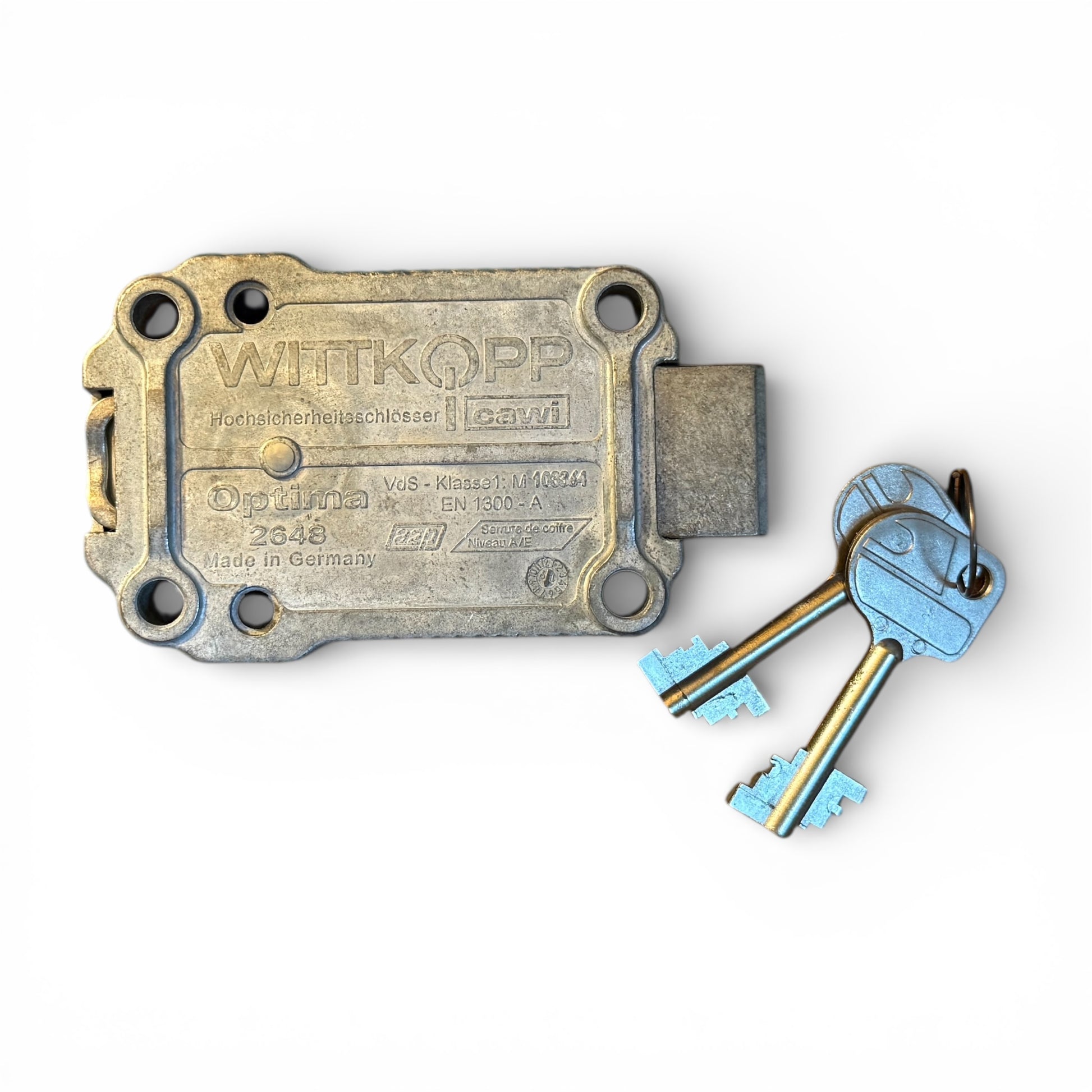 Wir bieten Ihnen hier ein neues Tresorschloss Cawi 2648 Optima von Carl Wittkopp mit 2 Schlüsseln an.